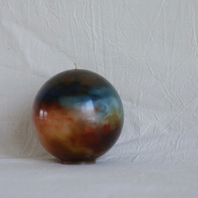 幼い頃の記憶を思い返すと、そこにはいつも ひとつの景色とその中にいた誰かの存在があります。 名前は思い出せなくても声の調子やしぐさ、そばにいたときの安心感だけは なぜか今もはっきり残っている。 「あなたを想う」はそんな記憶の中の人をそっと思い浮かべながら 生まれた球体のキャンドルシリーズです。 三つの色はその人が持っていた甘さや強さ、まっすぐな愛情や 一緒にいる時の空気感をイメージして重ねています。 この灯りを前にした時、自然と思い浮かんだ顔や気配。 あるいは、ただ「懐かしい」と感じた気持ち。 それこそがあなたにとっての大切な誰かだと思います。 灯す時間がその人を思い出す静かなひとときとなりますように。 【主な素材】 パラフィンワックス 【カラー】 バーガンディ×ウェッジウッド×ブラウン 【サイズ】 直径 : 約6cm 高さ : 約6cm 【燃焼時間】 約15時間(燃焼時間は環境により前後します) ──────────────────────────── 〈色について〉 このキャンドルは三つの色を重ねて一つの灯にしています。 それぞれの色には性格や感情、人の持つ空気感のようなものを イメージとして込めています。 たとえば、甘さ・まっすぐさ・やさしさ・元気。 言葉にすると似ていても思い浮かぶ誰かは人それぞれです。 この色の組み合わせを見て、「この人みたいだな」と感じたなら その感覚を大切にしてもらえたら嬉しいです。 色の意味はあなたの記憶の中で完成します。 言葉にできない「想い」を灯に託して、大切な誰かを思い浮かべながら 選んでください。