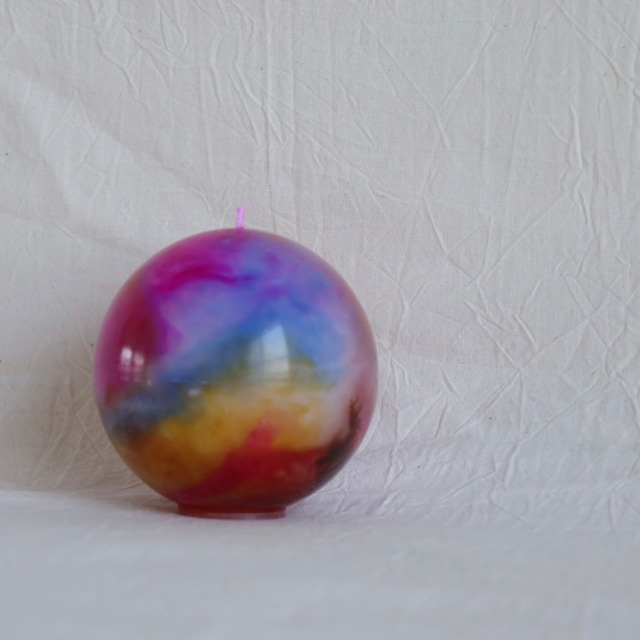 幼い頃の記憶を思い返すと、そこにはいつも ひとつの景色とその中にいた誰かの存在があります。 名前は思い出せなくても声の調子やしぐさ、そばにいたときの安心感だけは なぜか今もはっきり残っている。 「あなたを想う」はそんな記憶の中の人をそっと思い浮かべながら 生まれた球体のキャンドルシリーズです。 三つの色はその人が持っていた甘さや強さ、まっすぐな愛情や 一緒にいる時の空気感をイメージして重ねています。 この灯りを前にした時、自然と思い浮かんだ顔や気配。 あるいは、ただ「懐かしい」と感じた気持ち。 それこそがあなたにとっての大切な誰かだと思います。 灯す時間がその人を思い出す静かなひとときとなりますように。 【主な素材】 パラフィンワックス 【カラー】 マゼンタ×イエロー×ミント 【サイズ】 直径 : 約7.5cm 高さ : 約7.5cm 【燃焼時間】 約18時間(燃焼時間は環境により前後します) ──────────────────────────── 〈色について〉 このキャンドルは三つの色を重ねて一つの灯にしています。 それぞれの色には性格や感情、人の持つ空気感のようなものを イメージとして込めています。 たとえば、甘さ・まっすぐさ・やさしさ・元気。 言葉にすると似ていても思い浮かぶ誰かは人それぞれです。 この色の組み合わせを見て、「この人みたいだな」と感じたなら その感覚を大切にしてもらえたら嬉しいです。 色の意味はあなたの記憶の中で完成します。 言葉にできない「想い」を灯に託して、大切な誰かを思い浮かべながら 選んでください。