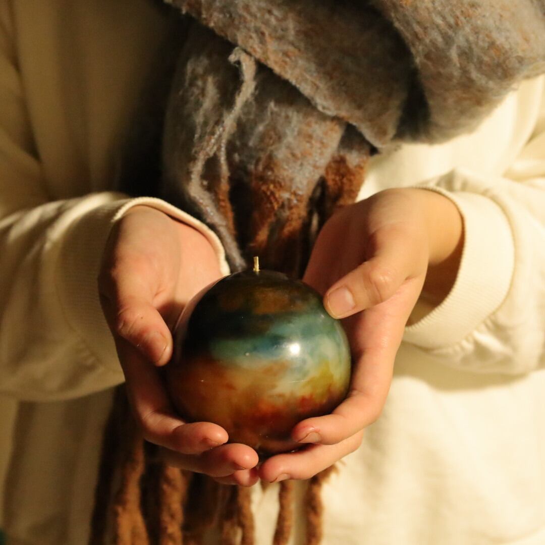 このキャンドルは三つの色を重ねて一つの灯にしています。